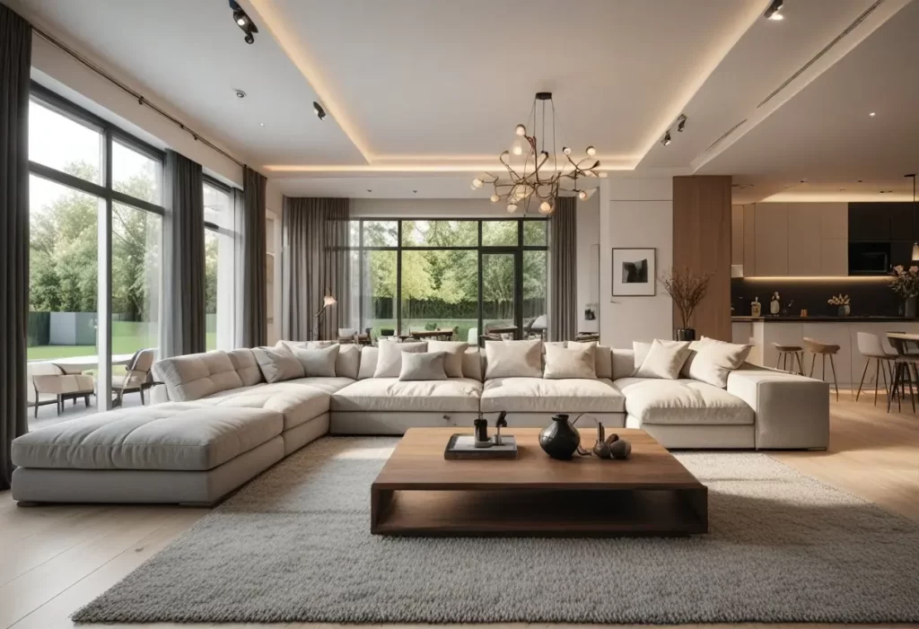 ۲. چیدمان مرکزی مبل ال؛ مناسب فضاهای بزرگ و مدرن